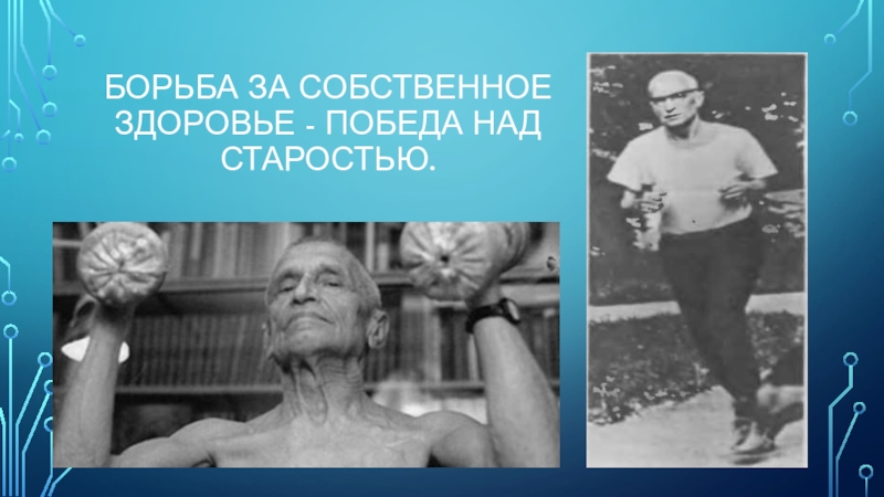 Слайд 7Борьба за собственное здоровье - победа над старостью.