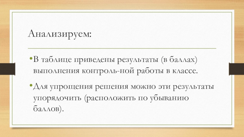 Для упрощения решения можно эти результаты упорядочить (расположить по убыванию баллов).