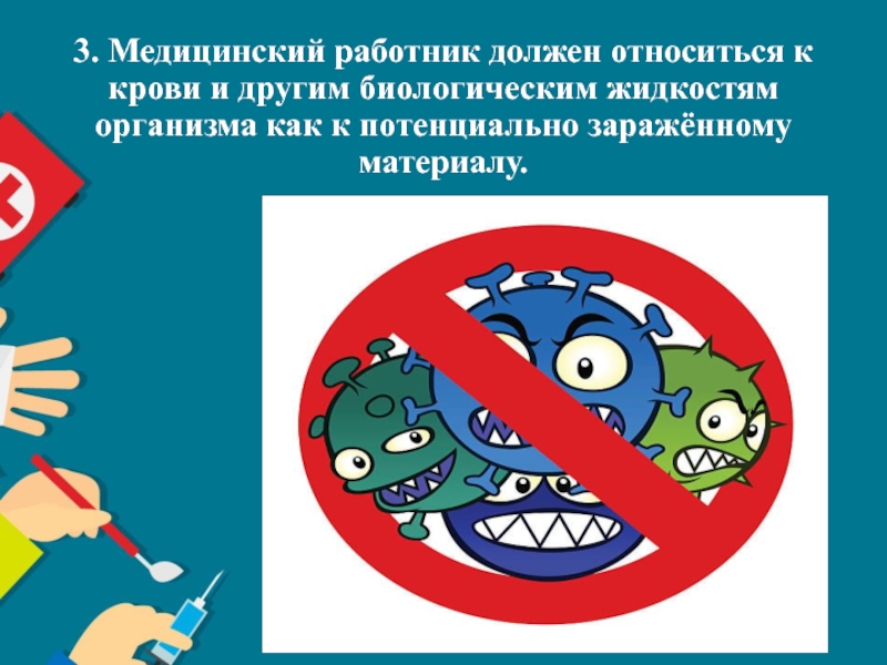 3. Медицинский работник должен относиться к крови и другим биологическим жидкостям организма
