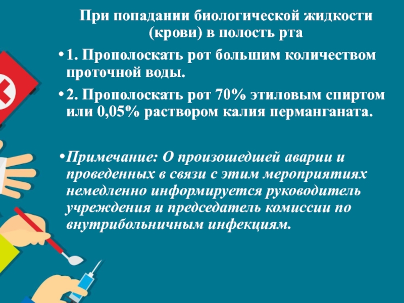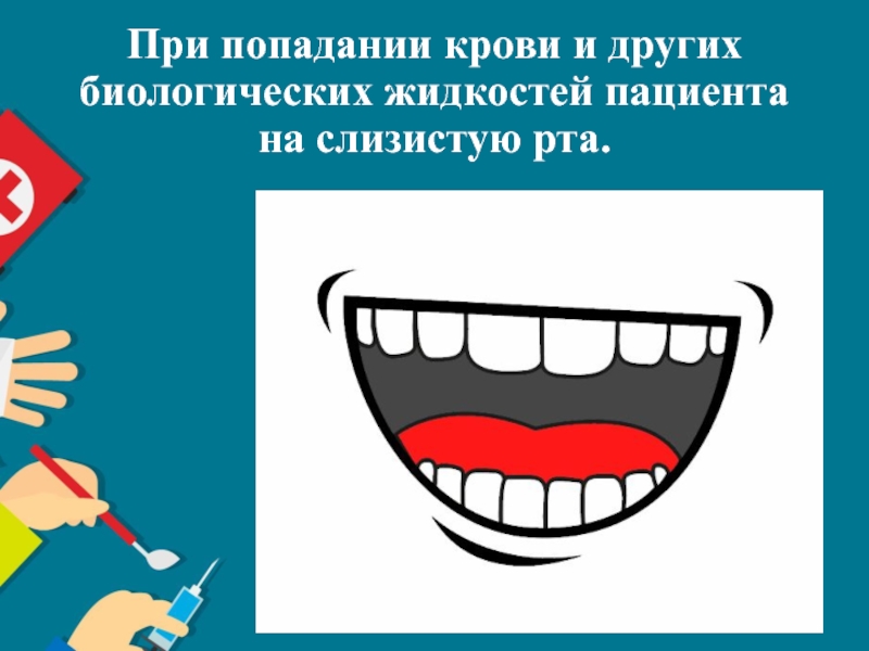 Слайд 15При попадании биологической жидкости (крови) в полость рта