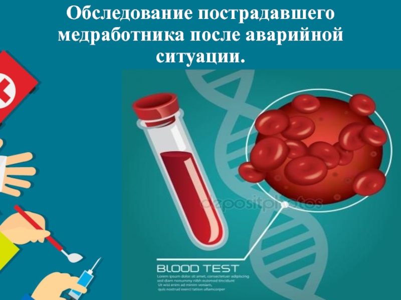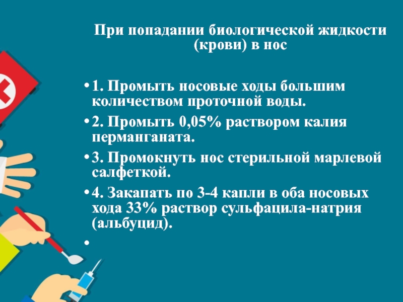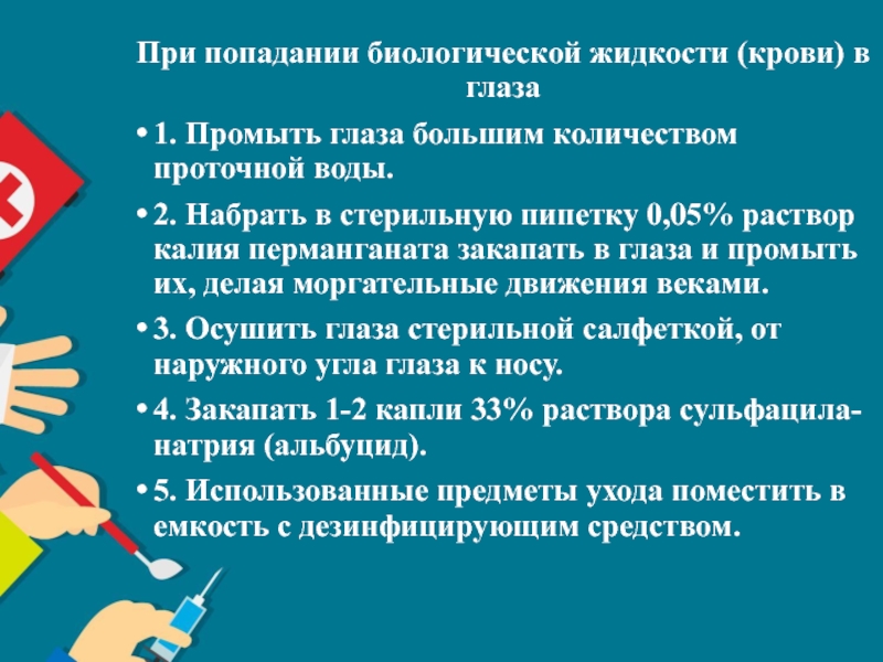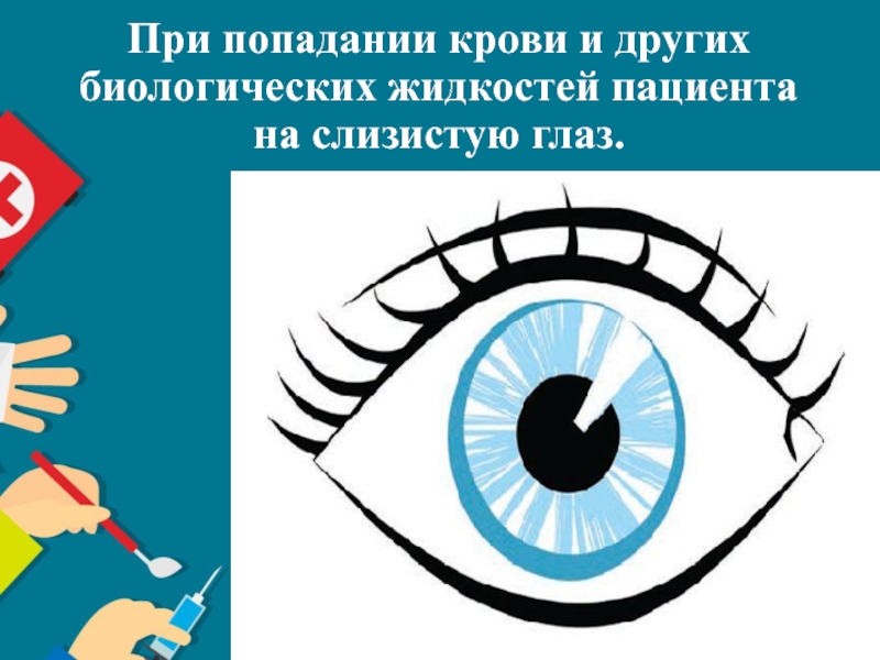 Слайд 11При попадании биологической жидкости (крови) в глаза