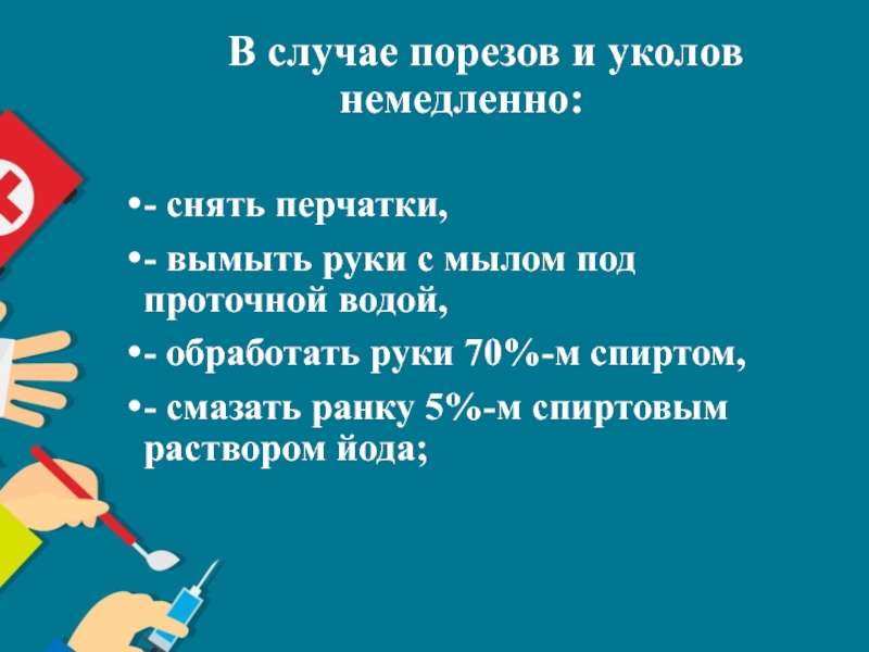 - обмывают водой с мылом и повторно обрабатывают 70%-м спиртом;
