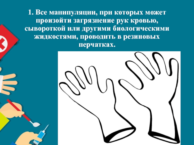 1. Все манипуляции, при которых может произойти загрязнение рук кровью, сывороткой или