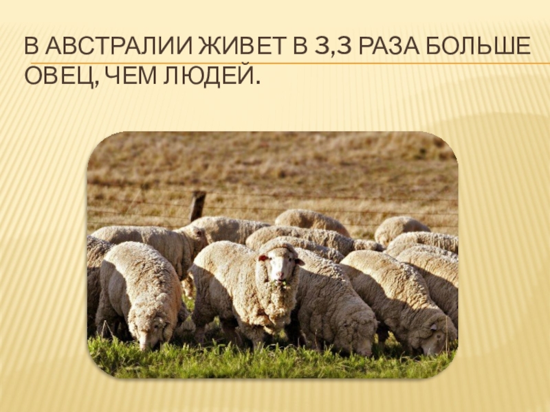 Слайд 11В Австралии живет в 3,3 раза больше овец, чем людей.