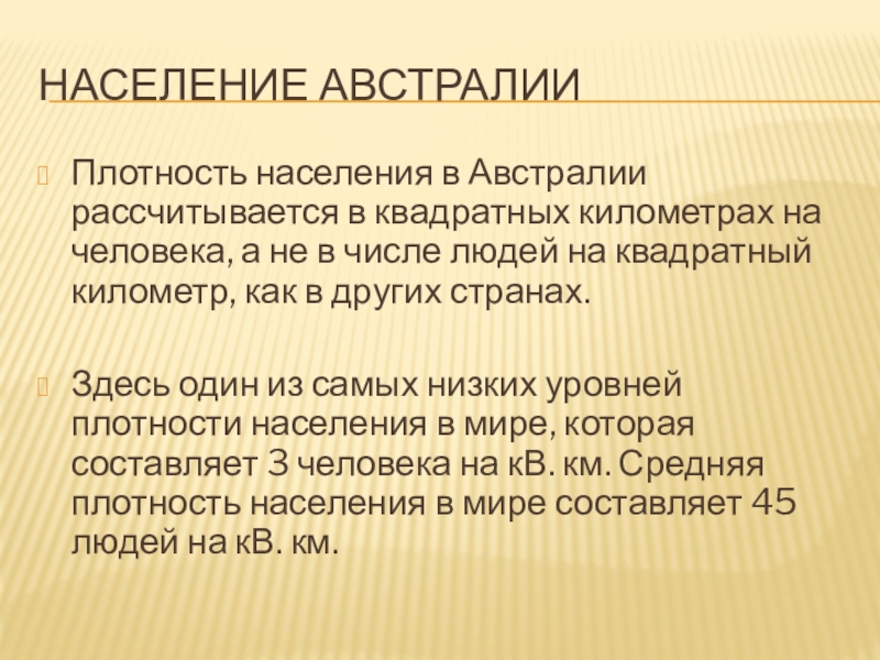 Плотность населения в Австралии рассчитывается в квадратных километрах на человека,