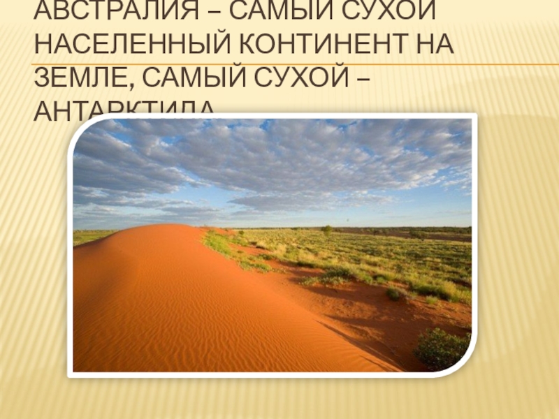 Слайд 3Австралия – самый сухой населенный континент на Земле, самый сухой –