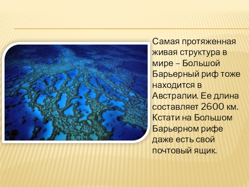 Слайд 10Самая протяженная живая структура в мире – Большой Барьерный риф тоже
