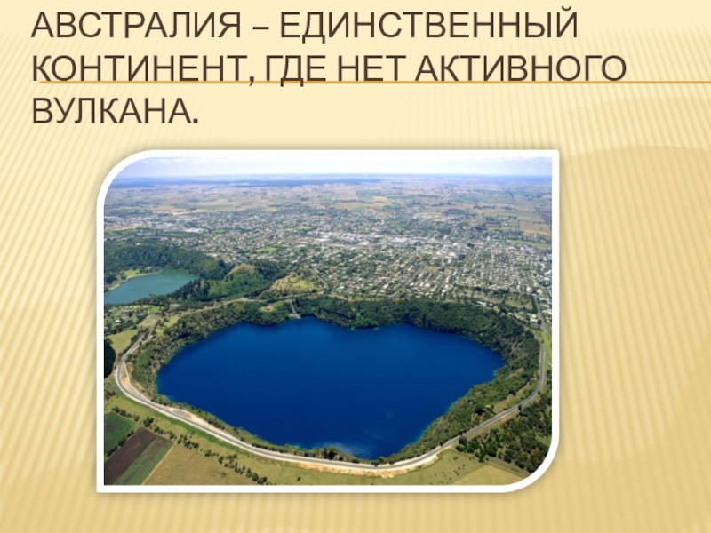 Слайд 5Австралия – единственный континент, где нет активного вулкана.
