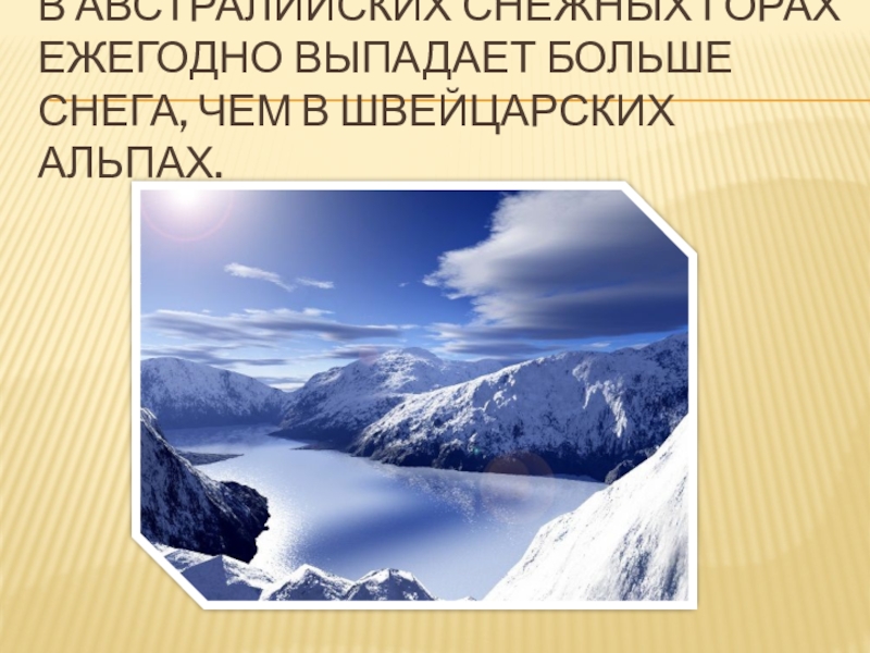 Слайд 4В Австралийских Снежных горах ежегодно выпадает больше снега, чем в швейцарских