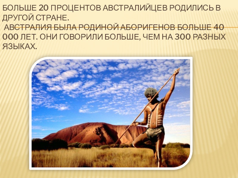 Слайд 17Больше 20 процентов австралийцев родились в другой стране.