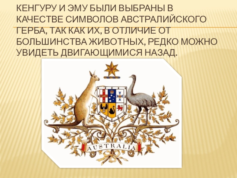 Слайд 9Кенгуру и эму были выбраны в качестве символов австралийского герба, так
