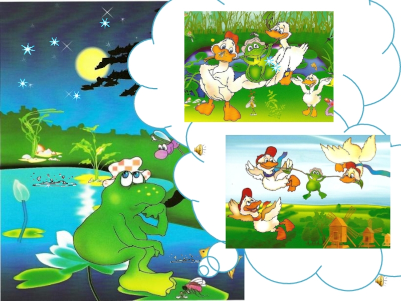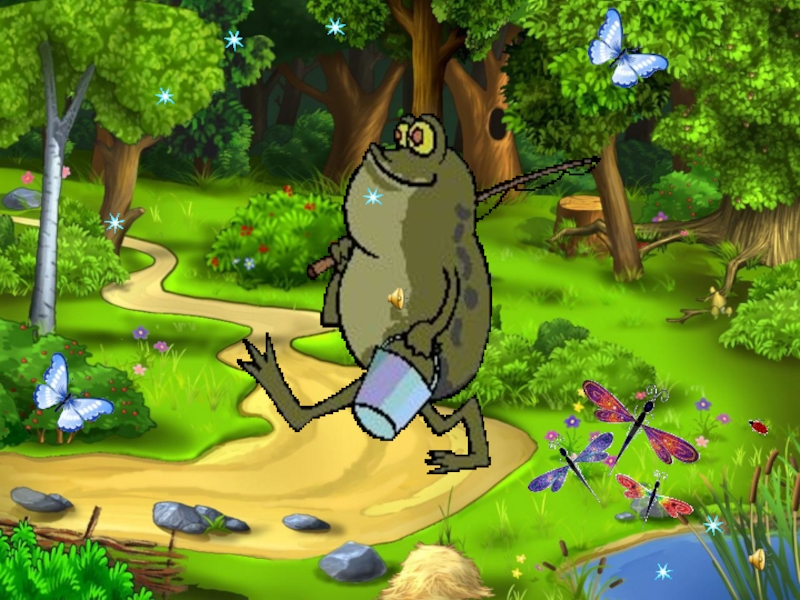 Лягушонок: Ква-ква-ква! Я пою, пою, пою, Песню звонкую мою.