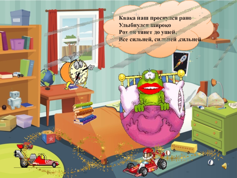 Квака наш проснулся раноУлыбнулся широкоРот он тянет до ушей,Все сильней, сильней ,сильней.