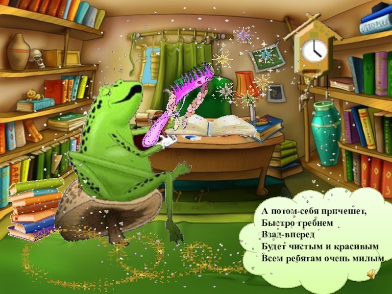 Слайд 19А потом себя причешет,