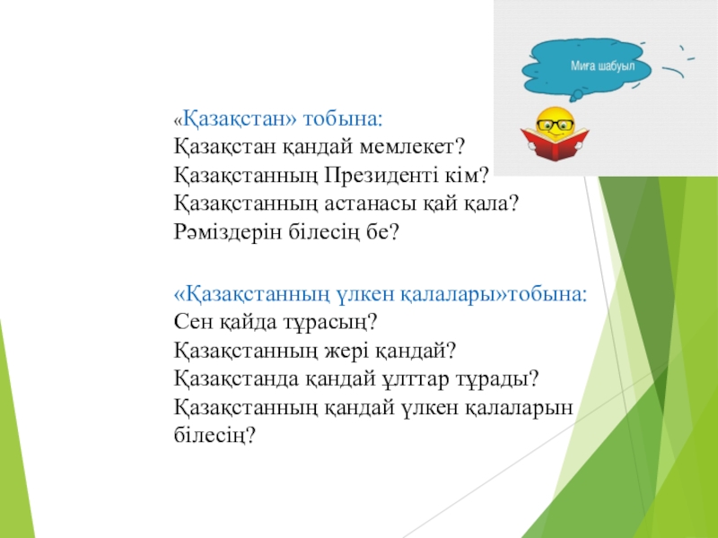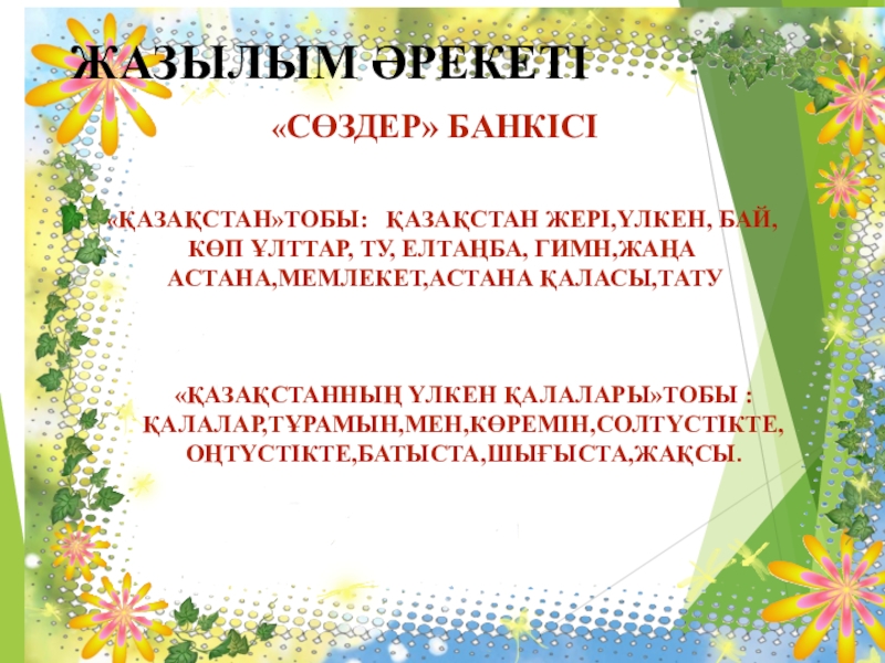 «Қазақстанның үлкен қалалары»тобы :қалалар,тұрамын,мен,көремін,солтүстікте,оңтүстікте,батыста,шығыста,жақсы.