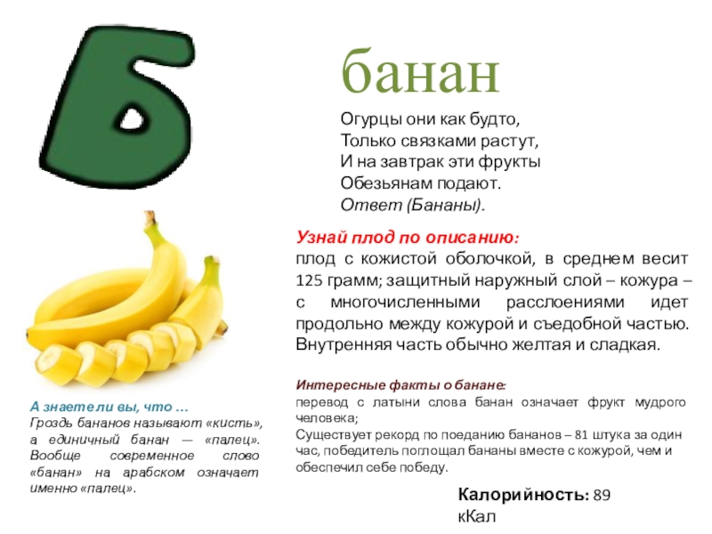 Гроздь бананов называют «кисть», а единичный банан — «палец». Вообще современное слово «банан» на арабском означает именно «палец».