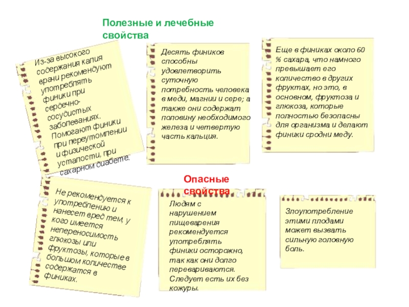 Десять фиников способны удовлетворить суточную потребность человека в меди, магнии и сере; а также они содержат половину необходимого железа и четвертую часть кальция.