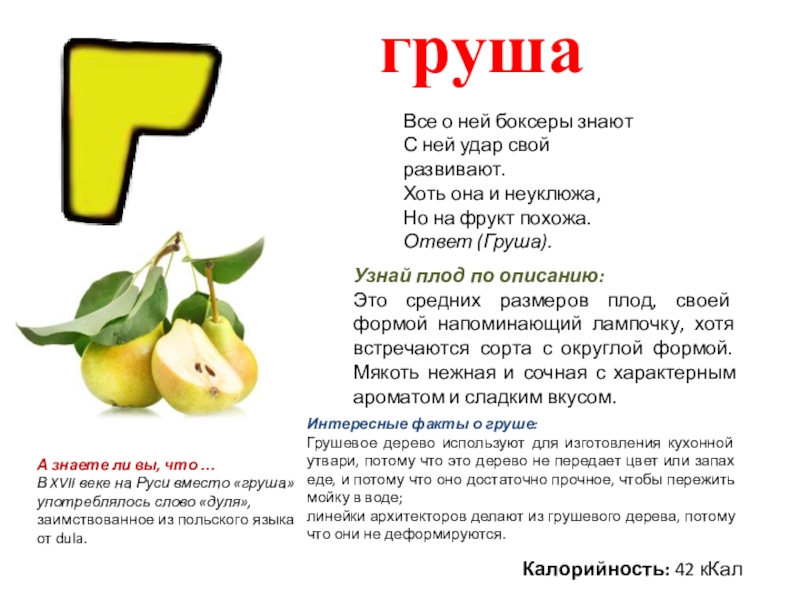 В XVII веке на Руси вместо «груша» употреблялось слово «дуля», заимствованное из польского языка