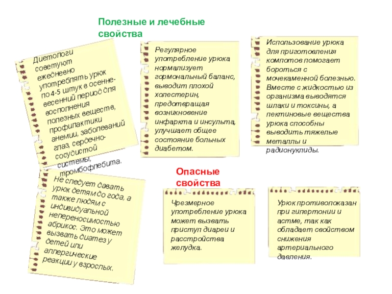 Использование урюка для приготовления компотов помогает бороться с мочекаменной болезнью. Вместе с жидкостью из организма выводятся шлаки и токсины, а пектиновые вещества урюка способны выводить тяжелые металлы и радионуклиды.