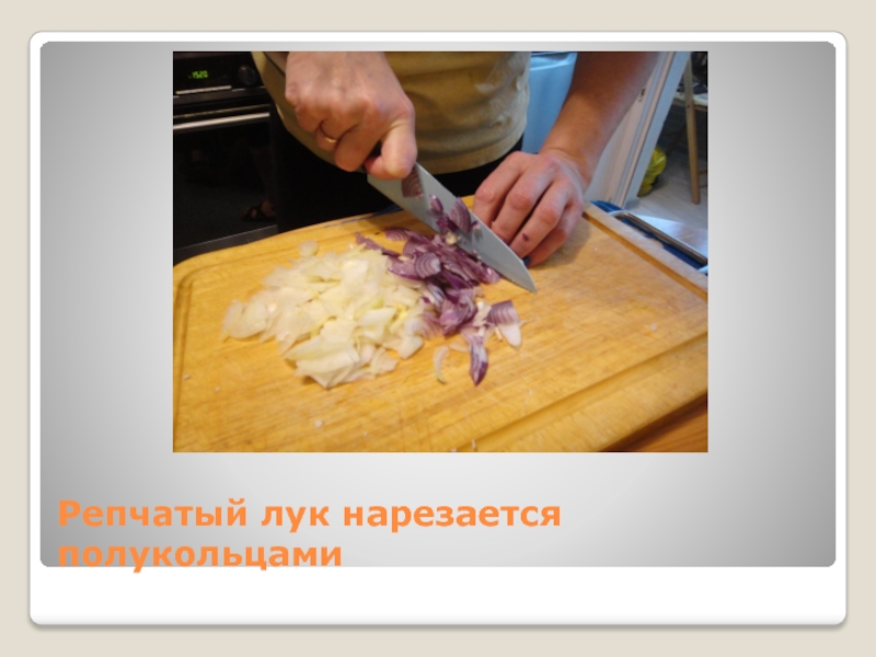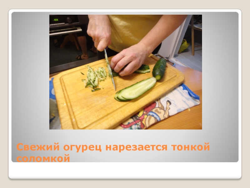 Слайд 7Свежий огурец нарезается тонкой соломкой