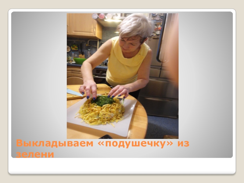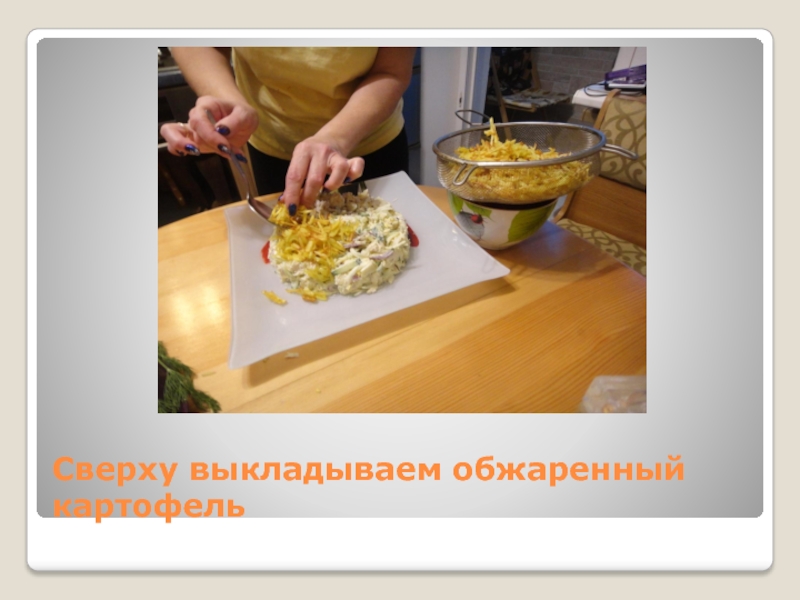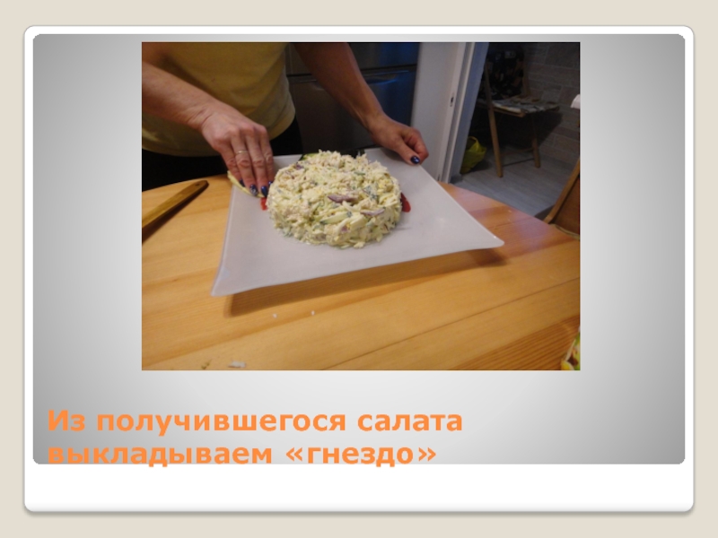 Слайд 10Из получившегося салата выкладываем «гнездо»