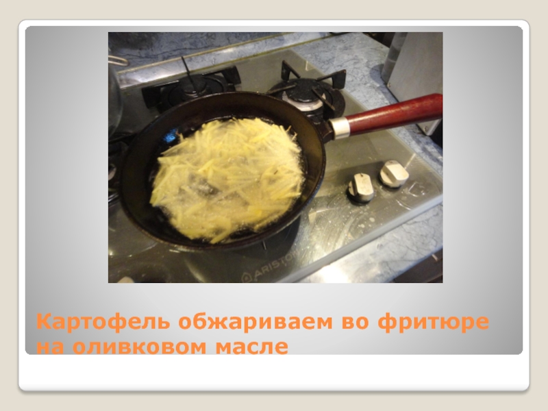 Слайд 6Картофель обжариваем во фритюре на оливковом масле