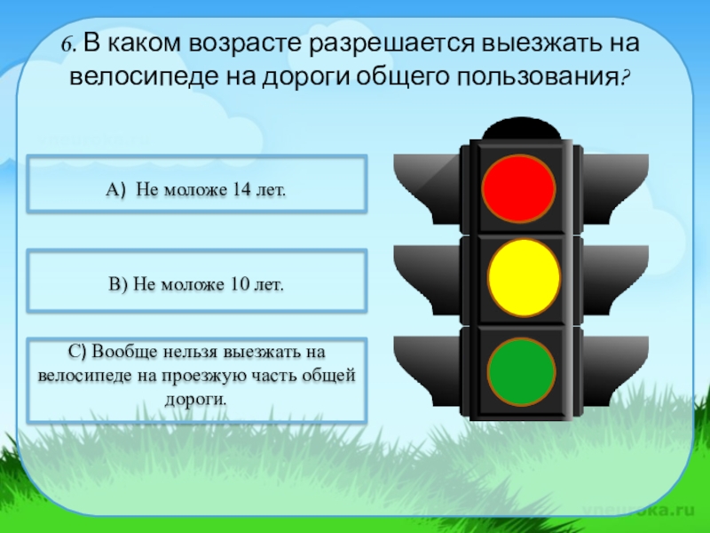 6. В каком возрасте разрешается выезжать на велосипеде на дороги общего пользования?