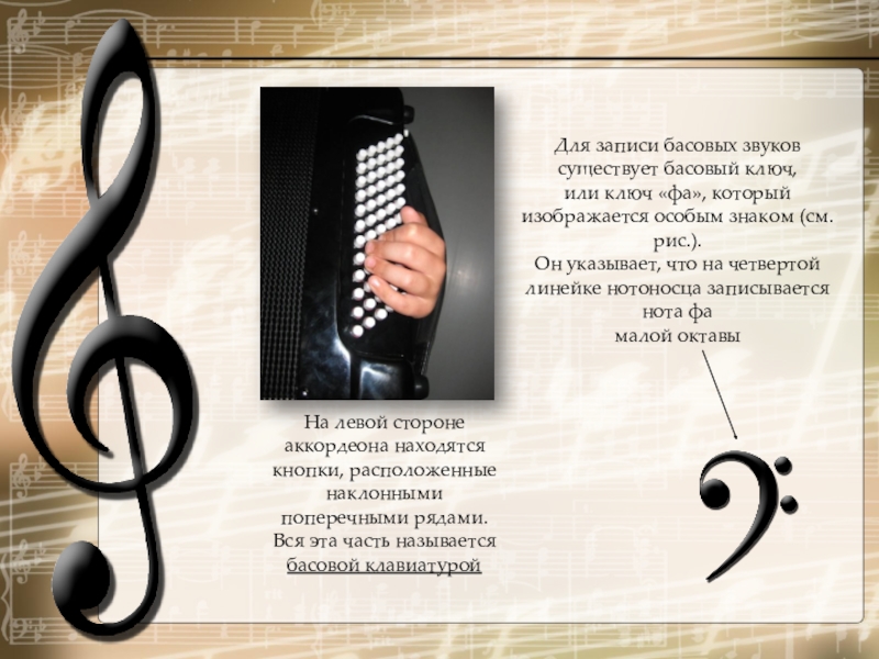 Для записи басовых звуков существует басовый ключ,