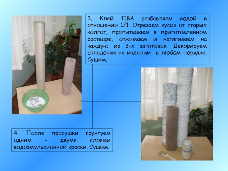 4. После просушки грунтуем одним - двумя слоями водоэмульсионной краски. Сушим.