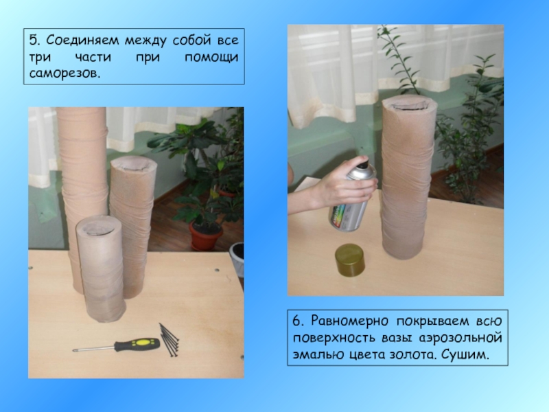 1. Подготовим основу для декоративной вазы. Для этого используем трубу из плотного картона, которая обычно является основой для сворачивания (наматывания) линолеума, коврового покрытия или садовой плёнки и, как правило, остаётся после их использования ненужной.