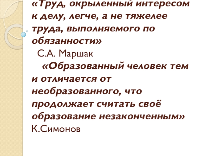 «Образованный человек тем и отличается от необразованного, что продолжает считать своё образование незаконченным» К.Симонов