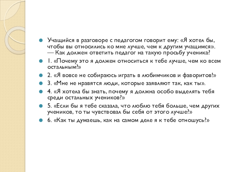 вы относились ко мне лучше, чем к другим учащимся». — Как должен ответить педагог на такую просьбу ученика?