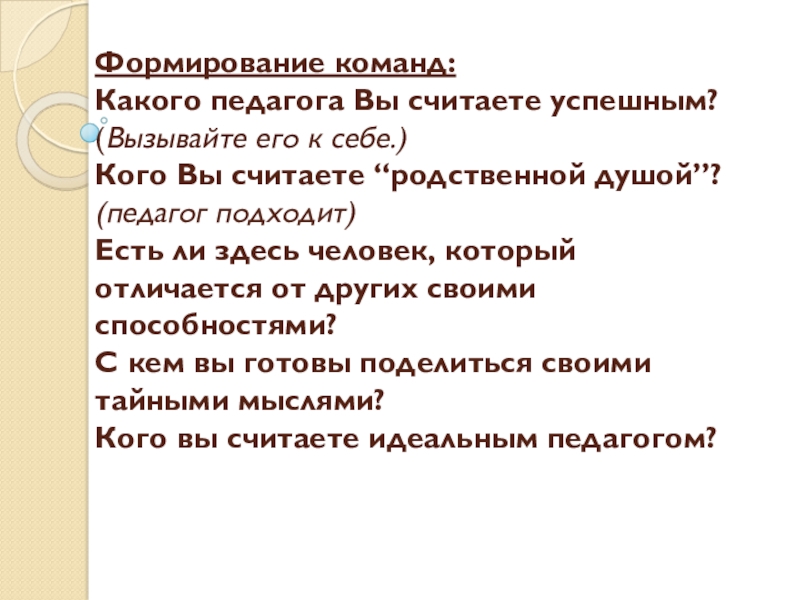 Какого педагога Вы считаете успешным? (Вызывайте его к себе.)