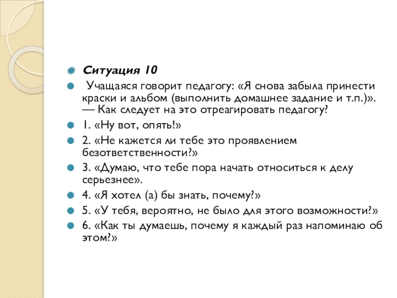 (выполнить домашнее задание и т.п.)». — Как следует на это отреагировать педагогу?
