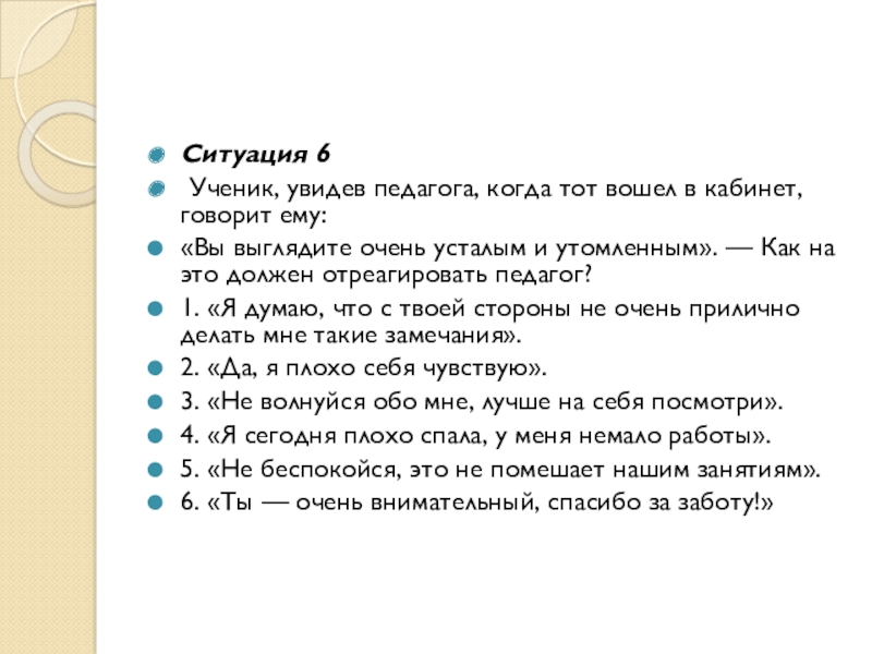 выглядите очень усталым и утомленным». — Как на это должен отреагировать педагог?