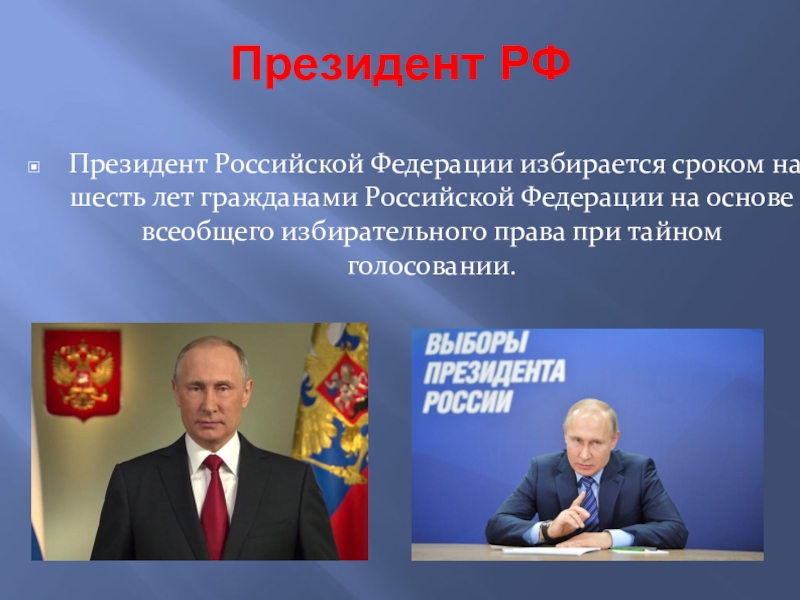 Президент Российской Федерации избирается сроком на шесть лет гражданами Российской