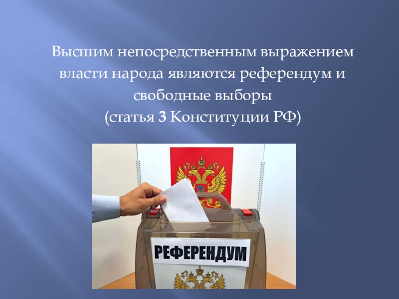 и быть избранным в органы государственной власти и местного самоуправления, а также участвовать в референдуме