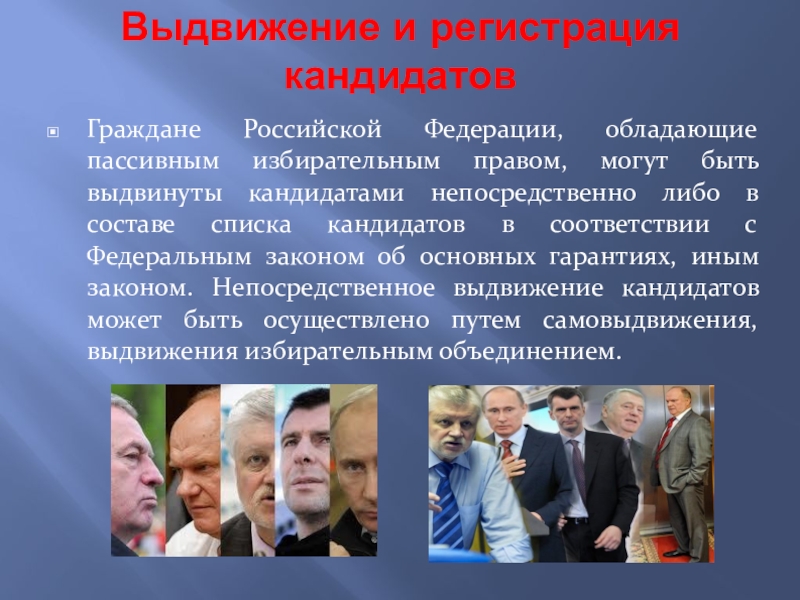 Граждане Российской Федерации, обладающие пассивным избирательным правом, могут