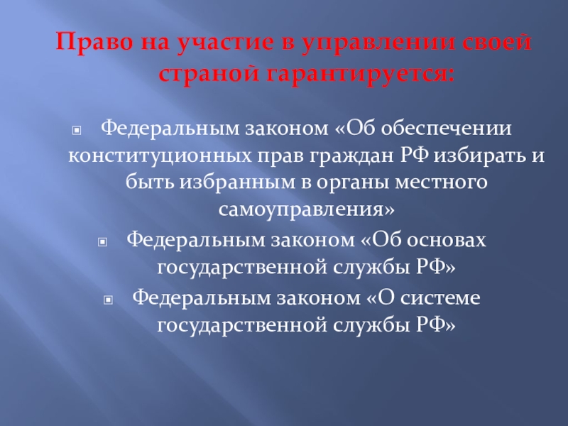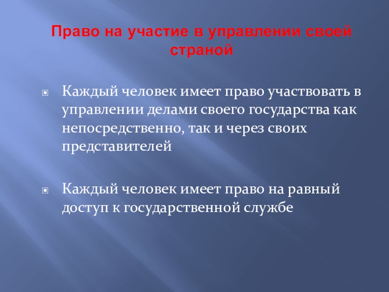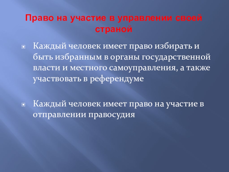 Каждый человек имеет право участвовать в управлении делами своего государства как