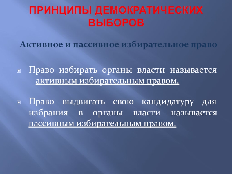 Слайд 15ПРИНЦИПЫ ДЕМОКРАТИЧЕСКИХ ВЫБОРОВ