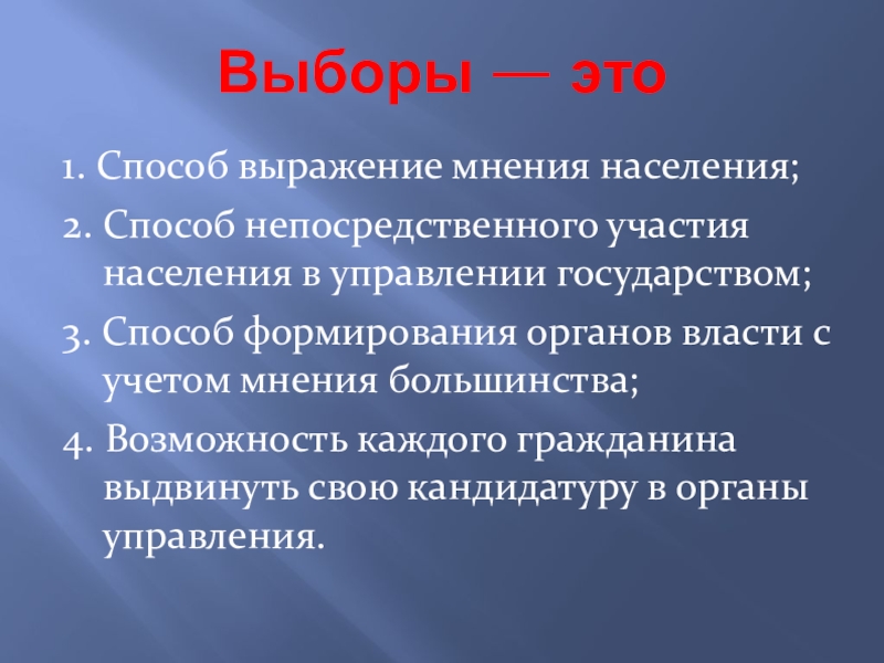 4. Возможность каждого гражданина выдвинуть свою кандидатуру в органы управления.
