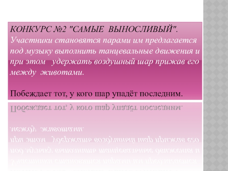 Слайд 7КОНКУРС №2 "САМЫЕ ВЫНОСЛИВЫЙ".
