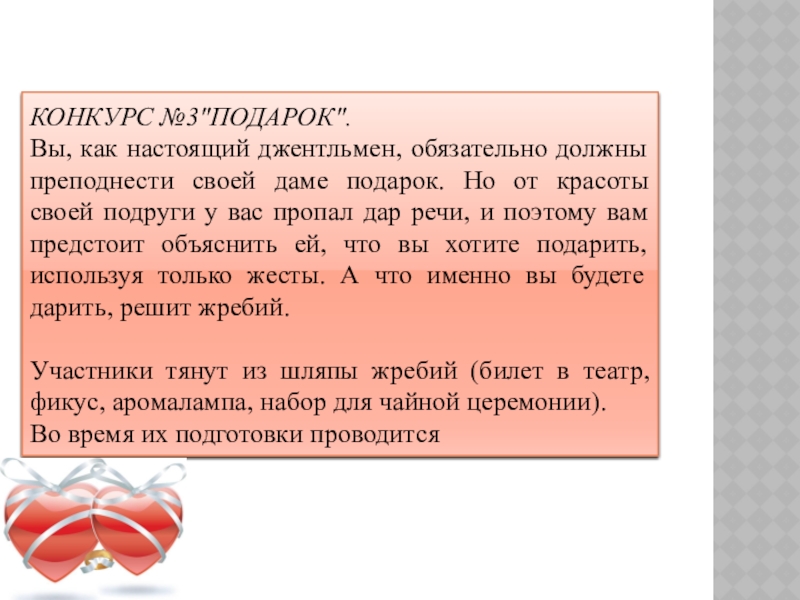 Слайд 8КОНКУРС №3"ПОДАРОК".