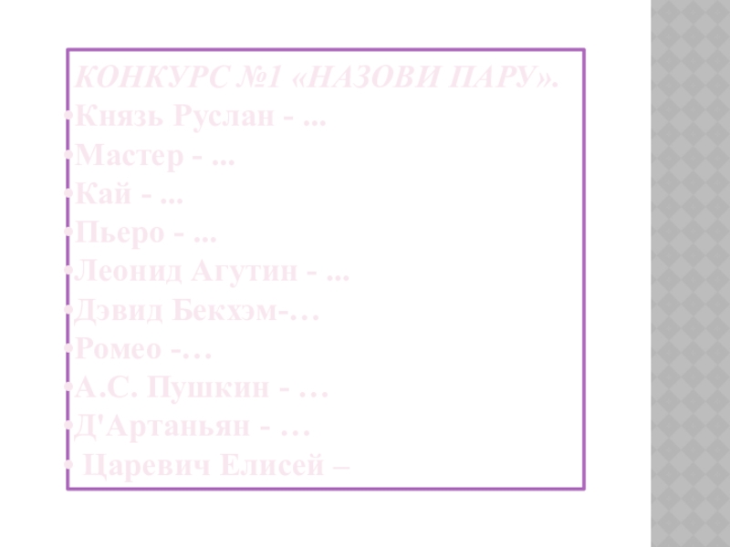 Слайд 5КОНКУРС №1 «НАЗОВИ ПАРУ».