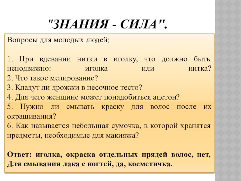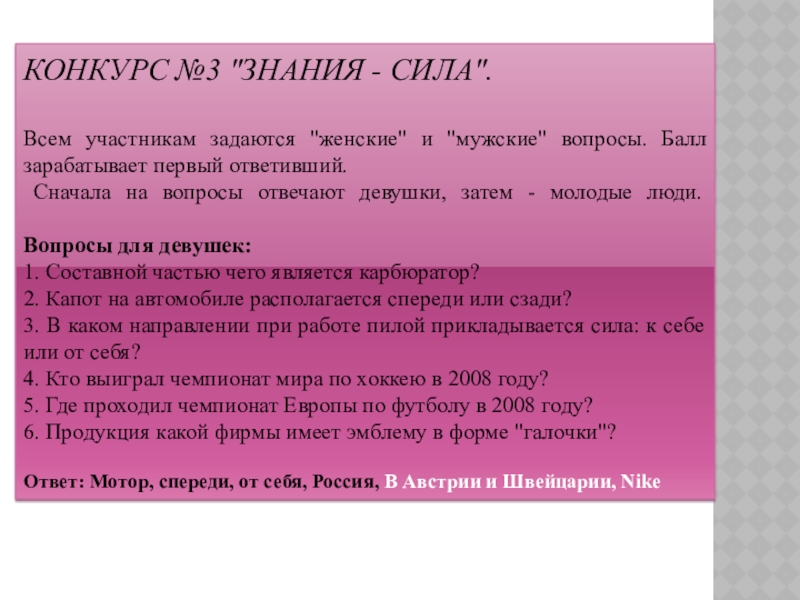 Слайд 10КОНКУРС №3 "ЗНАНИЯ - СИЛА".