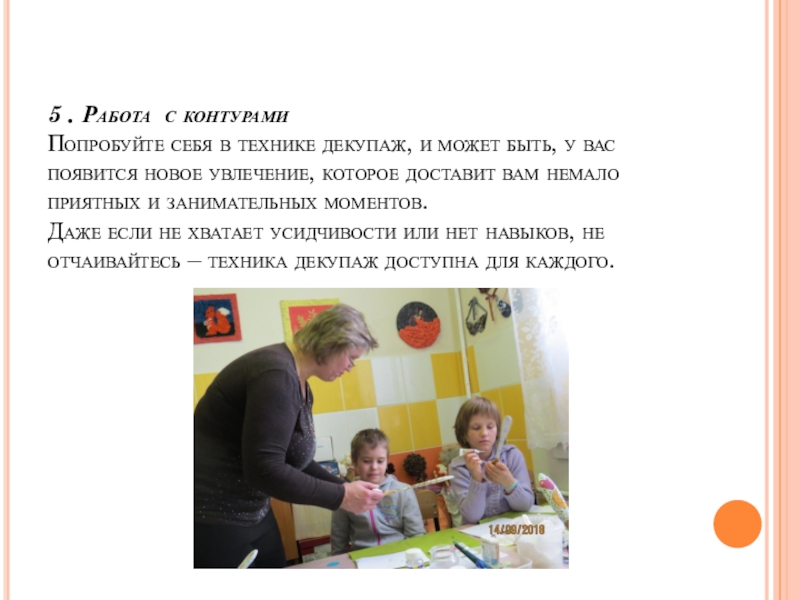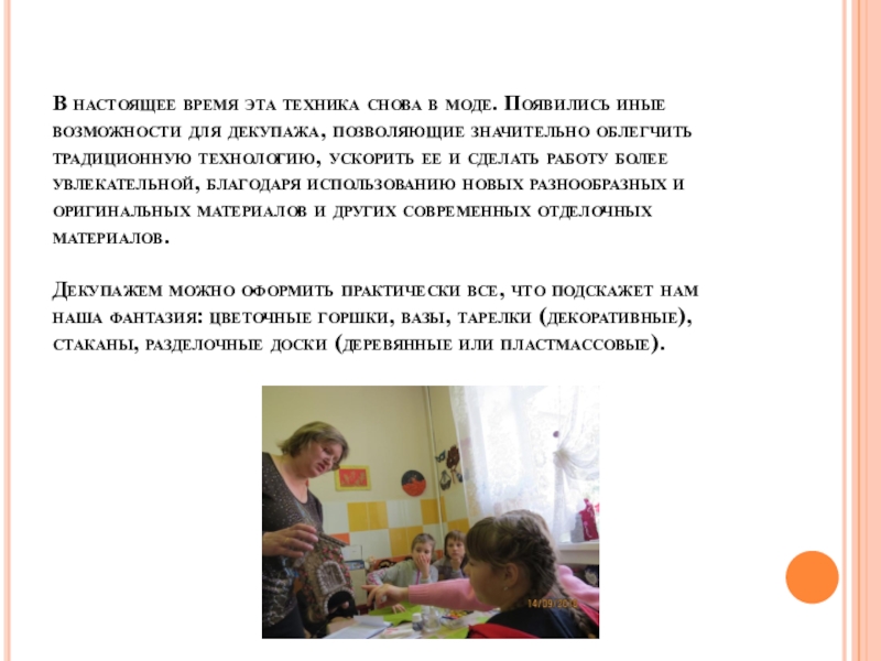 для декупажа, позволяющие значительно облегчить традиционную технологию, ускорить ее и сделать работу более увлекательной, благодаря использованию новых разнообразных и оригинальных материалов и других современных отделочных материалов.