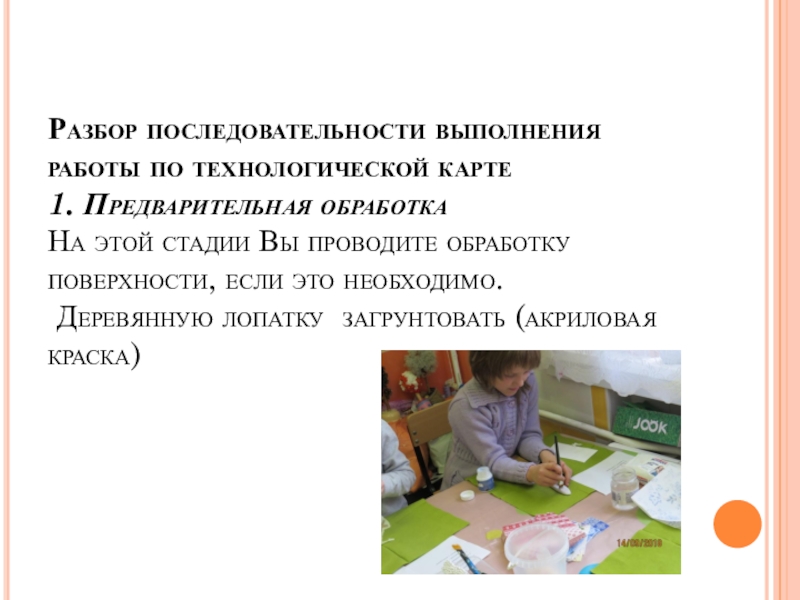 Слайд 15Разбор последовательности выполнения работы по технологической карте