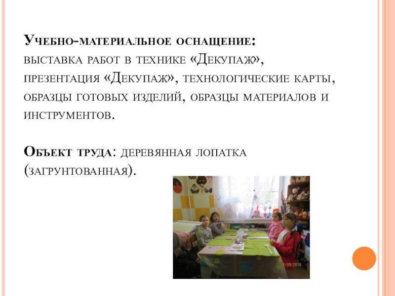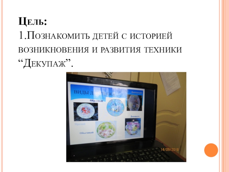 1.Познакомить детей с историей возникновения и развития техники “Декупаж”.