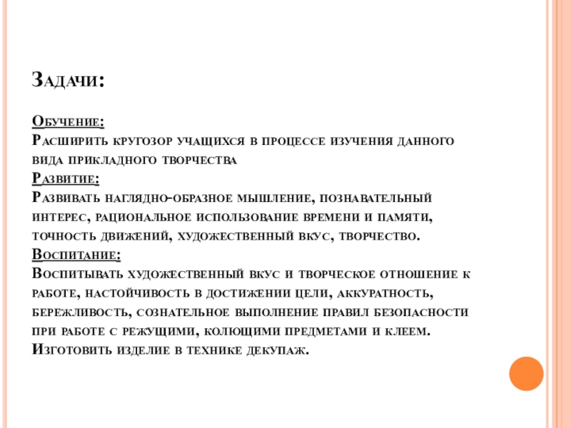 Расширить кругозор учащихся в процессе изучения данного вида прикладного творчества