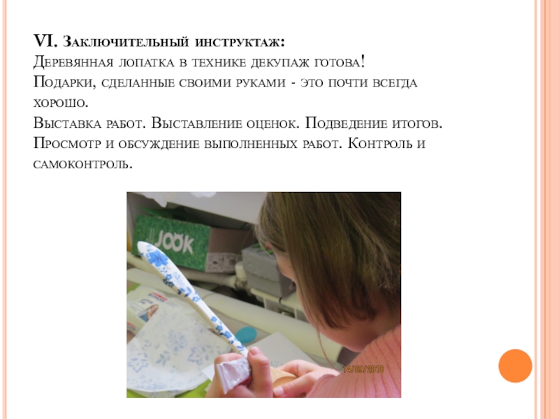 Слайд 21VI. Заключительный инструктаж:
